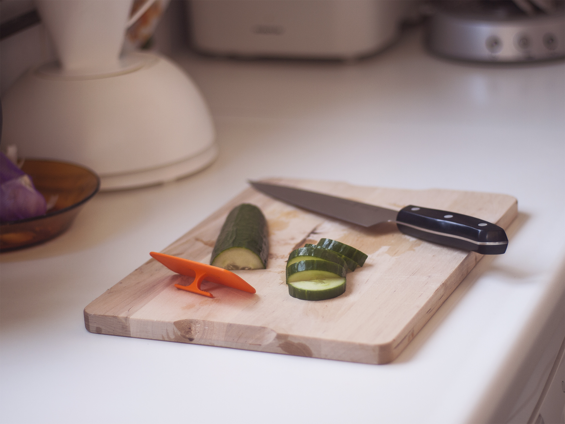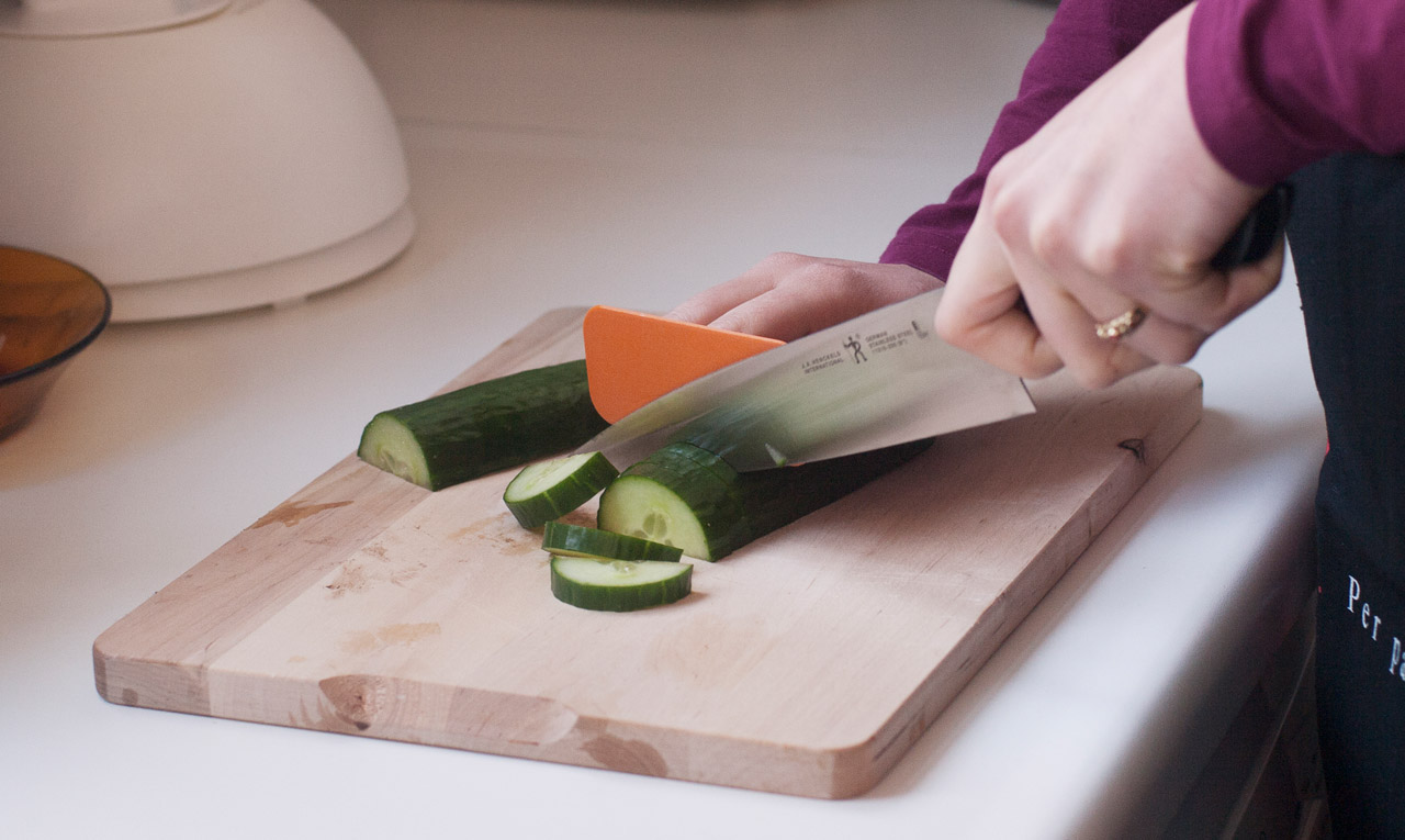 Beginning, and even experienced, home chefs could run into the risk of cutting themselves while chopping the ingredients to the right size. This tiny little shield will keep your fingers safe and inherently teaches you the right position for your fingers.