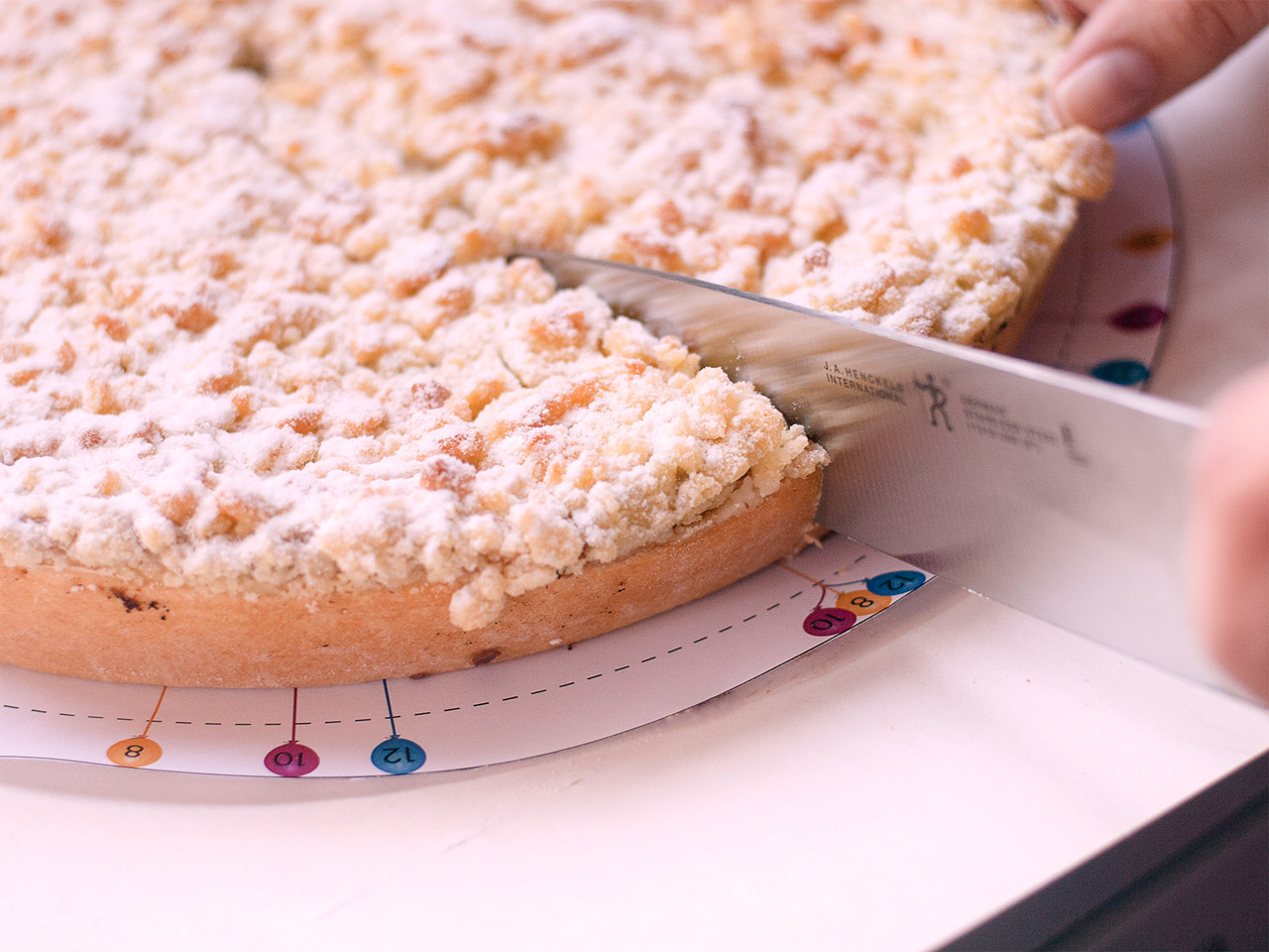 Even the most gifted mathematicians might face the problem of having to divide a cake at a party into 10 or 12 pieces. This simple piece of paper that you put under the cake tells you exactly what cuts to make to get perfectly equal shares.